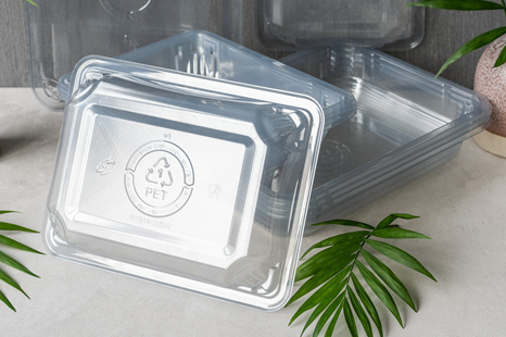 R-PET (Resirkulert PolyEtylenTereftalat) er PET som er resirkulert, derav R før PET. Tidligere hadde man ikke forsvarlig renseteknologi for å bruke resirkulert plast i forbindelse med matproduksjon, men takket være både en ny måte å rense plasten og ny tetningsteknologi som sveiser overfilm til skål kan vi nå bruke R-PET trygt i vår produksjon. Både skål, overfilm og etikett resirkleres i plastavfall..