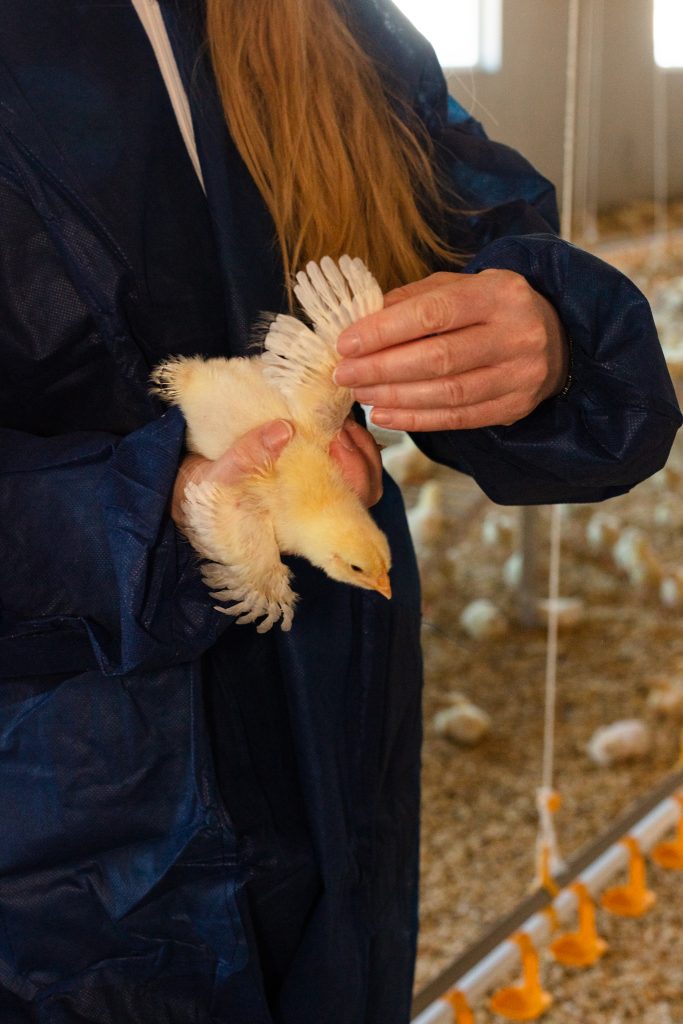 Avdeling for dyrevelferd og dyrehelse er ansvarlig for all oppfølging av bonde og dyra. Teamet til Den Stolte Hane jobber gjennom obligatoriske veterinærbesøk, oppfølging av produksjonsresultater og Dyrevelferdsprogrammet – samt gjennom regelmessige samtaler med bøndene. Christin kan rapportere om at produksjonsdata viser at dyra i Den Stolte Hane har god dyrehelse, og dette ville være vanskelig å oppnå uten god dyrevelferd.