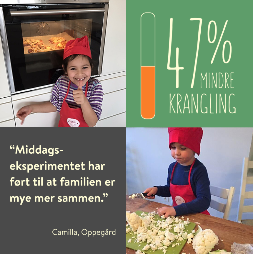 For et par år tilbake gjennomførte vi et prosjekt vi kalte middagseksperimentet. Vi inviterte familier til å sette av mer tid til å lage mat sammen – og resultatet var relativt entydig, familier som lagde middag sammen tilbrakte mer tid sammen, barna brukte mindre tid på skjermer, de ble mer harmoniske og lo oftere: