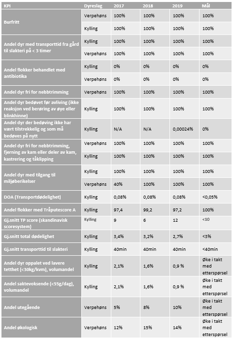 I tabellen under finner du noen av våre utvalgte mål for dyrevelferd. Tabellen omfatter alle produkter, og er gjeldende for alle geografiske områder av vår virksomhet.