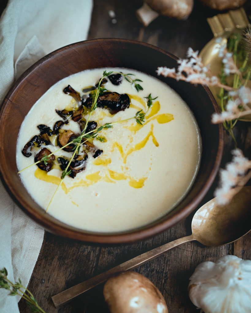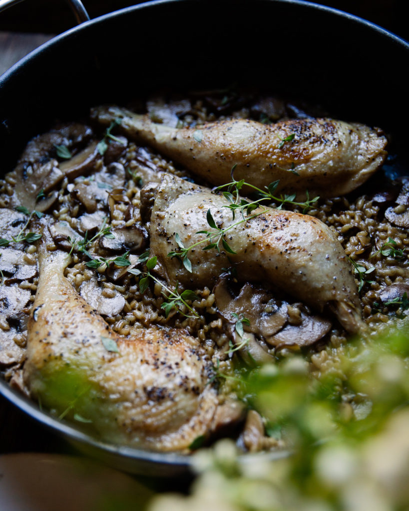 Nydelig kremet «alt-i-en-panne», med byggryn og sopp som passer godt til kalde kvelder.