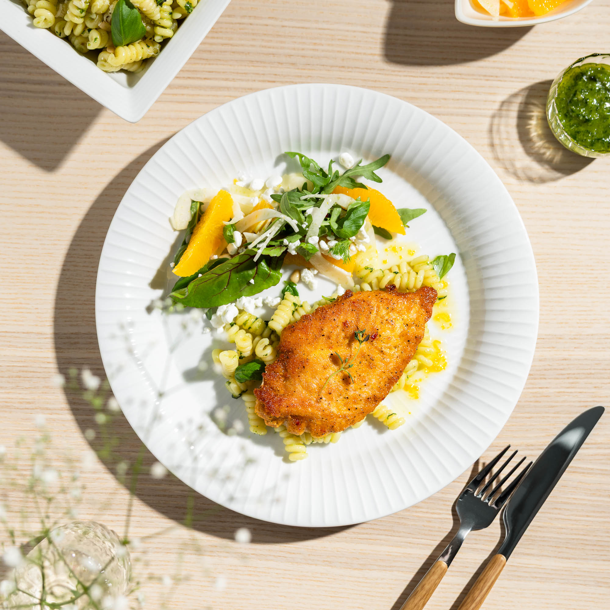 Panering er en fantastisk måte å tilføre det magre kyllingkjøttet mer smak og fuktighet. Når kyllingen stekes, dannes det en sprø skorpe som holder på fuktigheten i kyllingen som er innafor. Panering er ikke vanskelig, med krever at du har tid. Men når hverdagen og tiden presser, er de ferdige panerte Krønsj produktene en fantastisk måte å få det beste fra begge verdener. Krønsj time!