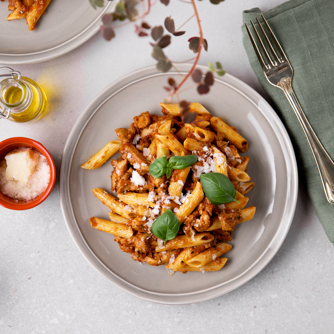 Har du lyst på noe raskt og godt til middag? Prøv denne gode pastaretten, med ferdig marinert pasta kylling.