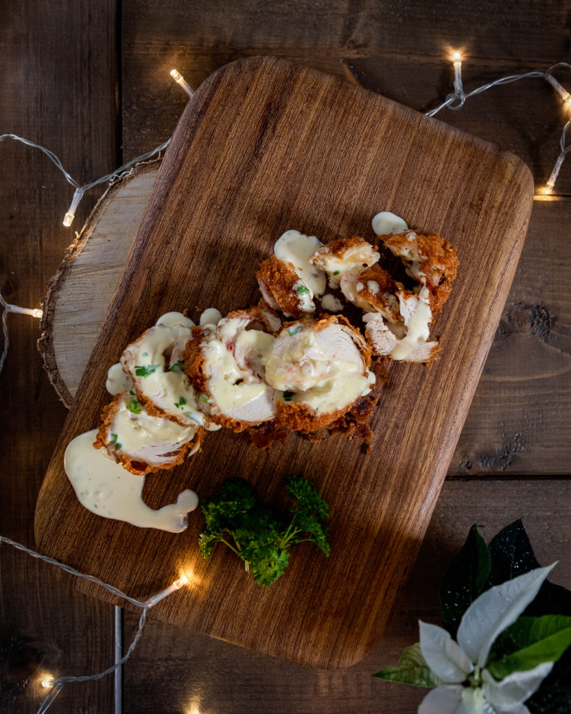 Her har Nevada laget en vri av klassikeren cordon bleu med gårdsklekket kyllingfilet, spekeskinke og ost. Kyllingen blir panert og deretter frityrstekt. Retten er crispy på utsiden, men utrolig saftig på innsiden. Den toppes med en deilig, kremet ostesaus.