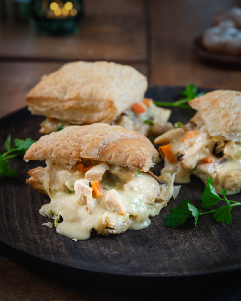 Creamy chicken in pastry shells er en spennende rett med kremet kylling servert på en seng av butterdeig. Disse passer perfekt som en del av en større julefrokost eller lunsj. Både skjellene og kyllingen er lett å forberede på forhånd, slik at du enkelt kan varme det opp når gjestene kommer.