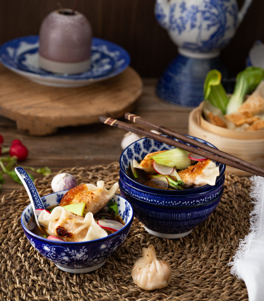Asiatisk Wonton suppe med kyllingkjøttdeig