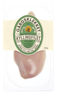 Bruker du Gårdsklekket kyllingfilet steker du kyllingfileten som angitt på pakken før du deler den i biter.