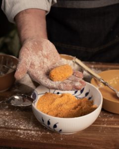 For å kunne lage krokettene trenger man tre dype skåler eller tallerkener med mel, egg og strøkavring i hver av dem. Med hjelp av to skjeer lag en oval eller rund form av krokettdeigen. Med hjelp av gafler rull krokettene i følgende rekkefølge:
