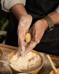 Sett den ferdige deigen i en bolle med plastfolie i kjøleskapet og la den stå 6 til 24 timer for å oppnå den ønskede teksturen for å kunne forme krokettene.