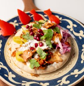 Syrlig salat med kyllingfilet, maiskrem og bakt tomat
